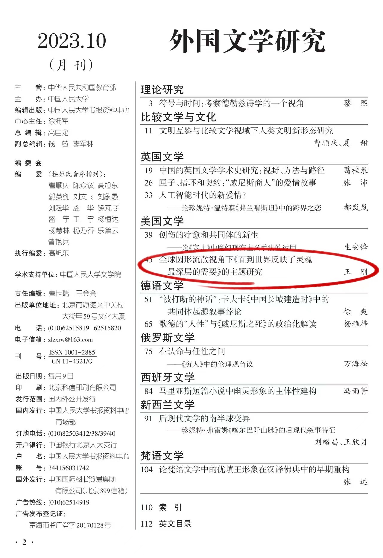 近日,PA视讯官方网站王刚教授的论文《全球圆形流散视角下<直到世界反映了灵魂最深层的需要>的主题研究》被CSSCI一级期刊《中国人民大学报刊复印资料》全文转载。