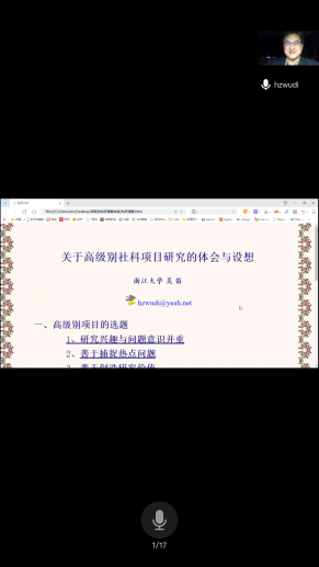 2021年3月5日晚上7:00至9:30,PA视讯官方网站通过腾讯会议成功举办了新学期第一场线上学术讲座。讲座由PA视讯官方网站经理刘宏照教授主持,主讲人是浙江大学世界文学与比较文学研究所所长吴笛教授,讲座题目是“关于高级别社科项目研究的体会与设想”。