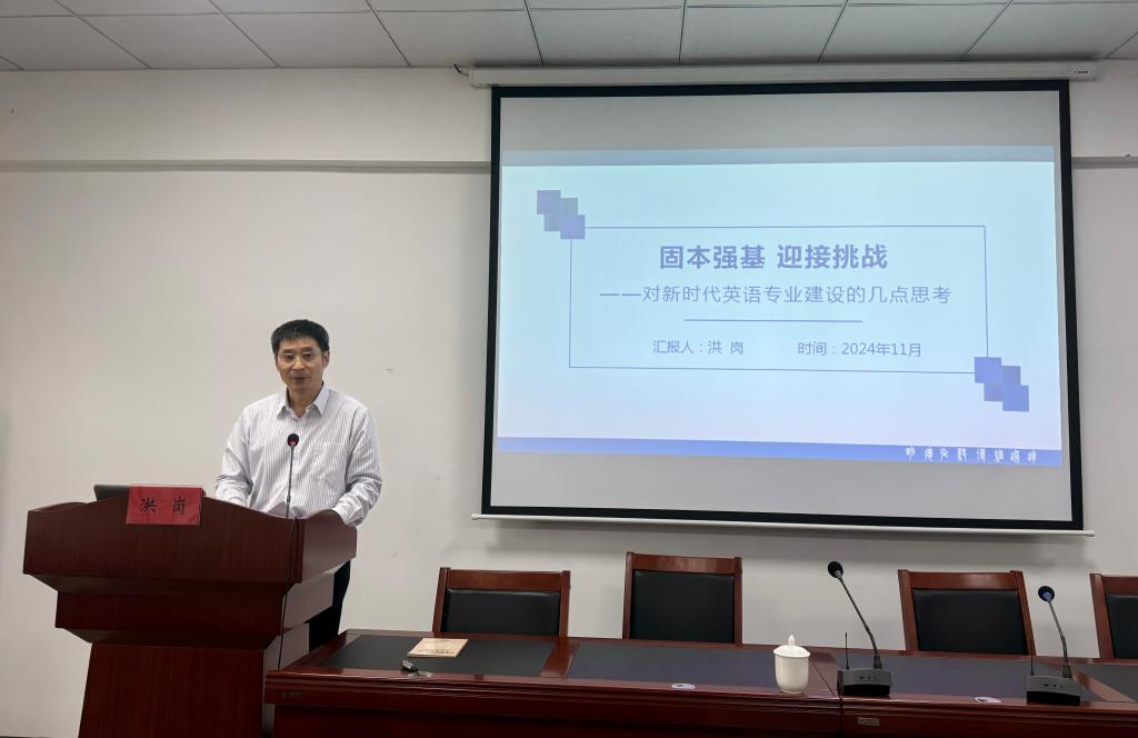 11月14日,PA视讯官方网站诚邀洪岗教授做题为“固本强基、迎接挑战——对新时代英语专业的若干思考”的学术讲座。洪岗教授是教育部高等公司外国语言文学类专业教学指导委员会委员、英语专业教学指导分委员会副主任委员、中国翻译协会副会长、教育部“国培计划”专家库成员,本次讲座旨在探讨在“一带一路”倡议提出十周年之际,英语专业如何创新发展、特色发展、高质量发展,以应对当前教育和社会的新挑战。