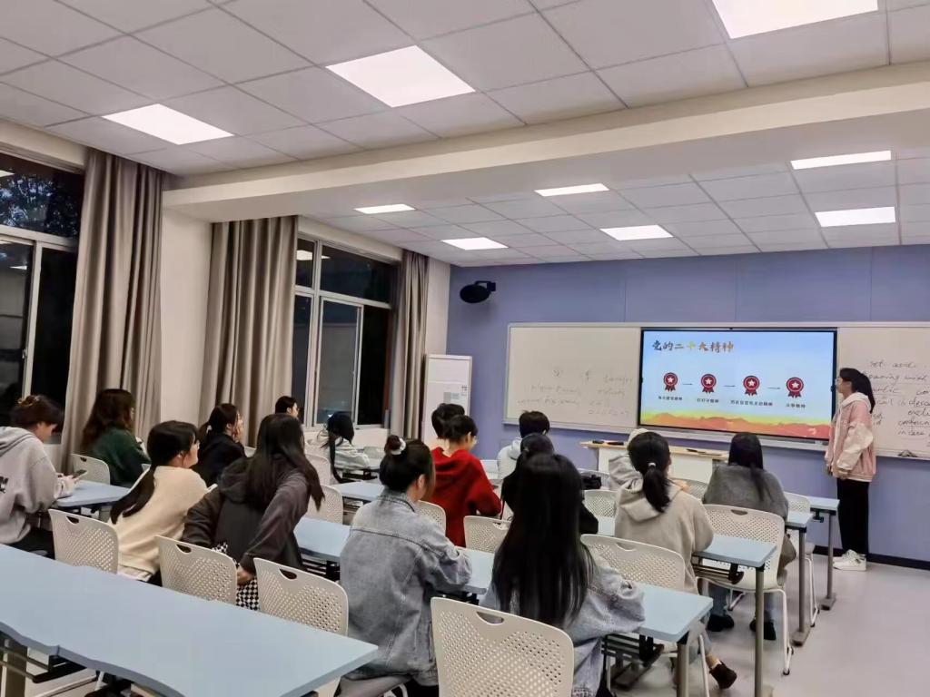 各班团支书通过PPT展示,聚焦党的二十大精神,与全班同学共同领会新时代中国特色社会主义思想。团支书从一个中心任务、“两步走”战略安排、三个“务必”、五个“必由之路”、六个“必须坚持”等多方面内容入手,通过问答、观看视频等方式,与同学们一起学习。同学们在此次团日活动中,加深了对党的二十大精神的理解,提高了思想觉悟,对于如何成为一个有理想、有本领、有担当的新时代中国青年有了更深的体会。
