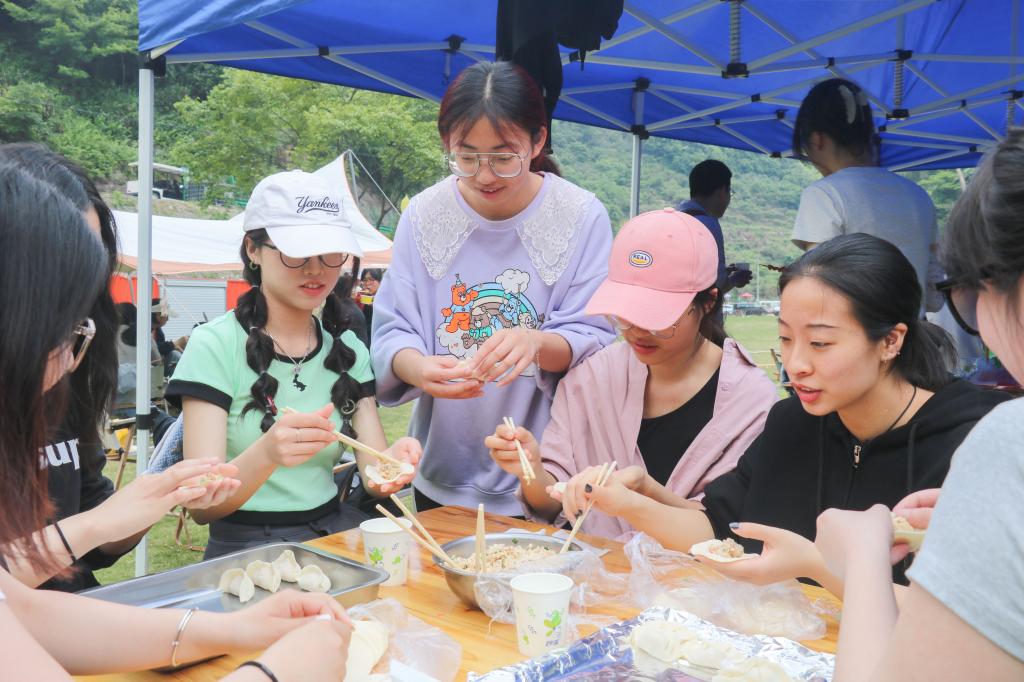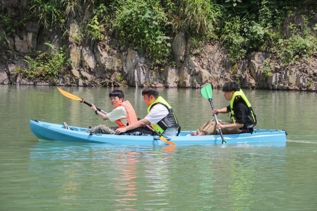 活动伊始,同学们坐着飞天魔毯来到了乐园的峡谷索桥与玻璃栈道,大家带着走出校园的热情与亲近自然的惬意开始了今天的研学之旅。随后,大家开着新西兰滑板车飞驰下山并乘坐观光小火车来到本次研学的营地开始了烧烤和包饺子,为自己准备午餐,在分工合作中,大家感受着制作美食的美好。午饭过后,大家在营地周围合影留念,在此留下最美好的回忆。在营地附近,随处可见同学们在攀树、射击、射箭和划船等等。大家在玩乐中释放了平日学习带来的压力,感受着劳动的乐趣。