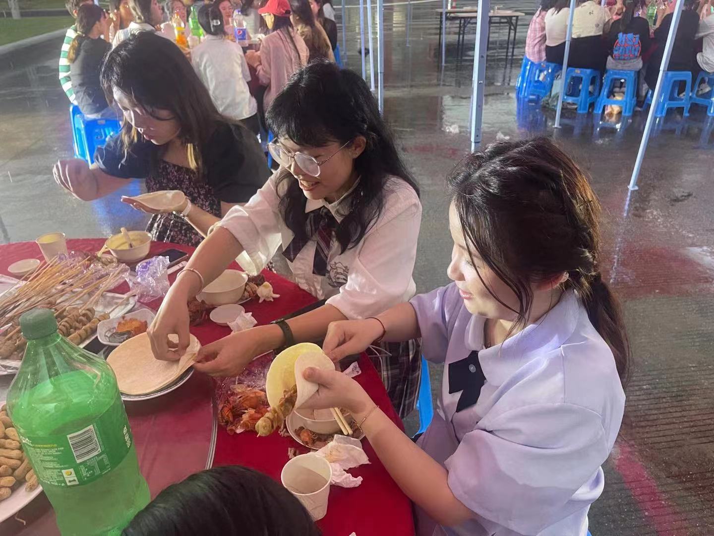 人间烟火味,最抚离人心,足不出校,就能品尝到“淄博烧烤”。毕业生们第一次在校园内撸着烫嘴的烧烤,喝着冰凉的汽水,与同窗好友谈天说地。吃饱喝足,登上舞台,载歌载舞,述说着对公司和公司的不舍和对未来的憧憬。掌声、笑声、欢呼声不断,轻松欢快的氛围中隐约透着丝丝离愁,感动在蔓延,祝福在延续。