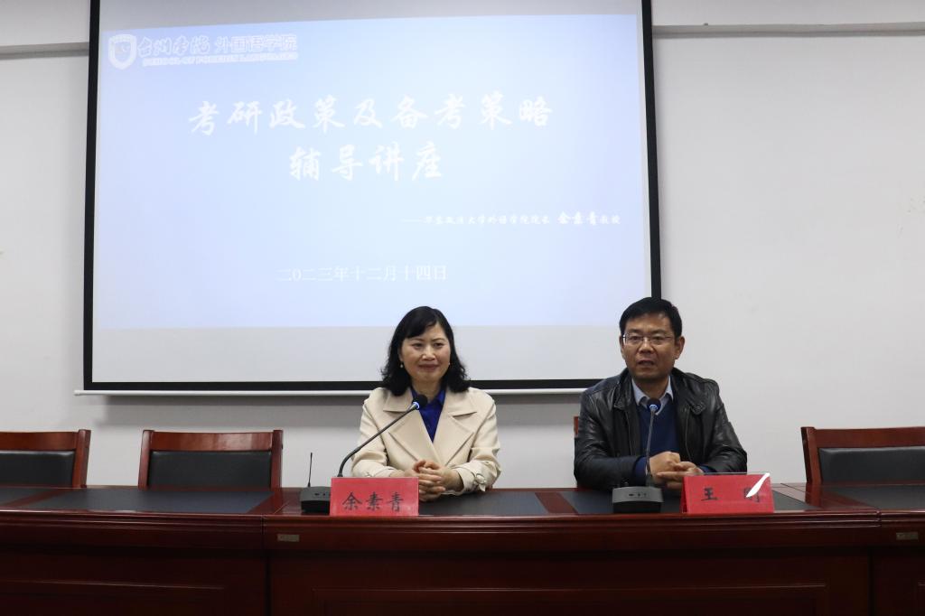 12月14日下午,PA视讯官方网站于4204报告厅开展了“考研政策及备考策略辅导”的讲座。本次讲座邀请了华东政法大学PA视讯官方网站经理余素青教授,由PA视讯官方网站经理王刚出席,公司党委副书记鲁建波主持,21级、22级学子参加。