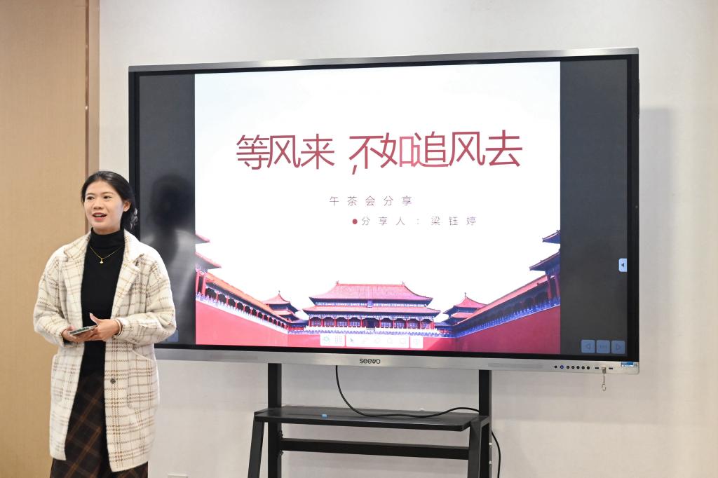 活动初始,由梁钰婷作为高年级员工代表,围绕“目标、发展、沉淀”三个关键词分享自己的大学四年,介绍学习、生活、就业方面的经验。她强调坚持自我与拒绝随波逐流的重要性,耐心地为学妹们解答疑惑。交流活动中同学们畅所欲言,分享了自己在台院成长的点点滴滴,表达了对公司、公司以及老师感激,同时提出自身在考研、考编、考证、课程学习、求职等方面的困惑,各年级辅导员耐心解答同学们提出的问题。最后,鲁建波对员工寄予殷切希望。他要求同学们摆正心态,不畏困难,努力学习;强调要心怀感恩,感恩父母、公司、社会,多参与到社会公益当中;鼓励同学们规划人生,尽快适应老员工活,领悟学习是第一要义。活动初公司送出的新年的“第一杯奶茶”和活动后发放的暖心大礼包,让参与本次活动的员工代表感受到了温暖与关怀。