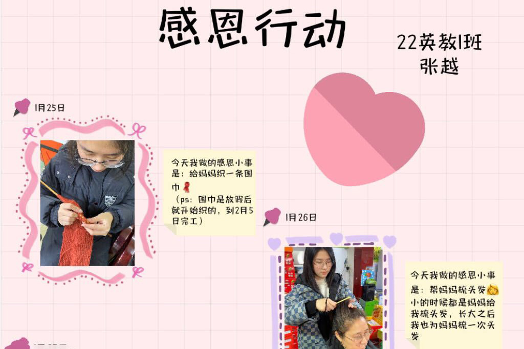 “知恩于心,感恩于行”主题系列活动中,同学们通过征文、打卡和摄影等多种创意形式踊跃参与,分享了寒假期间孝敬长辈的温馨故事,将感恩体现在众多小事之中。“21Days’challenge”活动,同学们在口语练习、运动健康、新年计划、备考冲刺等项目中勤奋进取,最后共91名同学完成打卡。