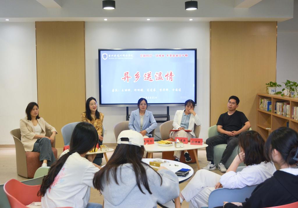 4月25日下午,PA视讯官方网站在广文书院举办主题为“异乡送温情”的第三十期午茶会。本次午茶会由PA视讯官方网站学工办主任王丽琼、辅导员许颂婕和龙莲弟以及23英语1班班主任方国莲出席,部分23级省外同学参加。