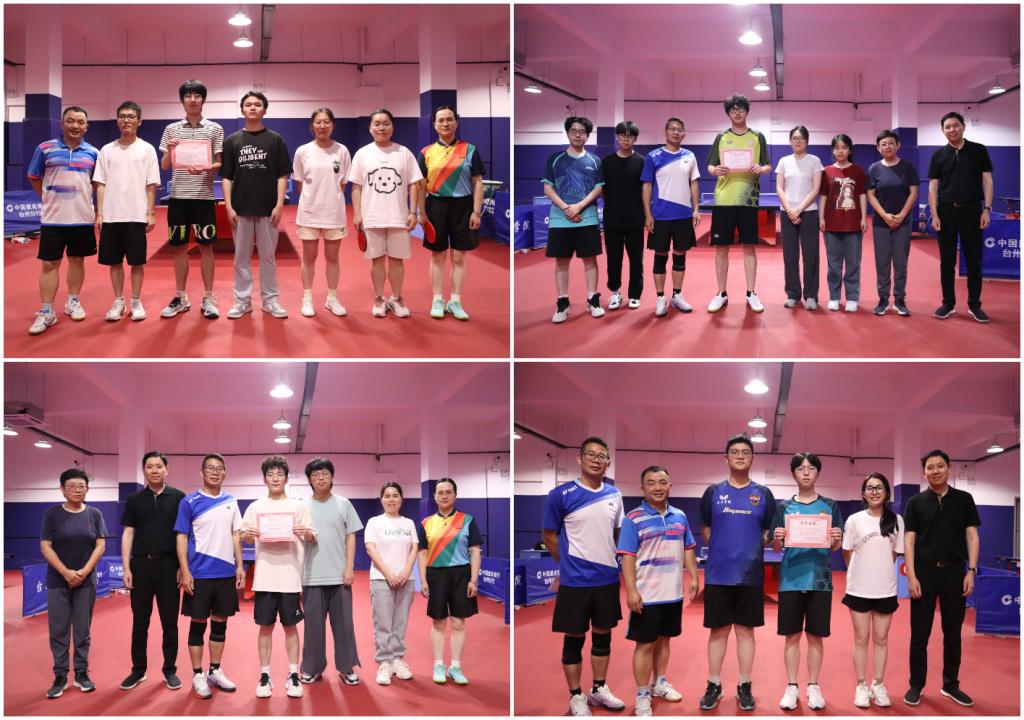 此次比赛共有男单,女单,男双,混双四项单场比赛,采取三局两胜制,比赛打满后,根据胜负场次的积分排名。赛场上,各参赛选手用球拍展示自己独到的球技,员工与教师之间配合默契,用热爱与汗水为自己的队伍积攒更多的比分。最终获奖情况为:
