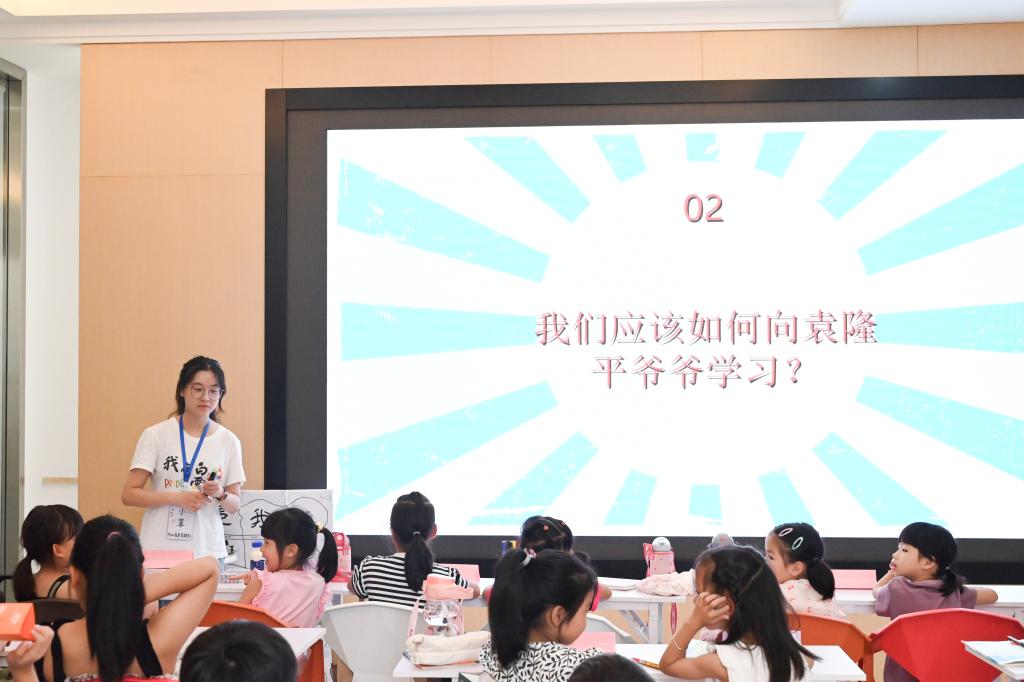 一粒米思念袁爷爷,学“稻”精神新密码。“人就像种子,要做一粒好种子。”从一粒极小的种子,到丛丛青翠秧苗,最后收获满仓稻米,期间需要耕作之人漫长的劳碌。下午,旨在缅怀袁隆平院士,实践队成员开展“一粒米思念袁爷爷”这一意义深远的课程,引导员工深入了解我国农业发展的重要性,传承袁隆平伟大精神。实践队成员通过生动的讲解和丰富的资料展示,向孩子们讲述了袁隆平院士的科研故事以及对我国农业的伟大贡献,带领员工领悟其坚持不懈、敢于创新的优秀品质。随后通过两首古诗,加深孩子节约粮食、“粒粒皆辛苦”的意识。课程的开展,不仅是对袁隆平院士的深切缅怀,更是一次生动深刻的思政教育,让孩子在了解袁老伟大事迹的同时,加深保障粮食安全的重要性以及自身所肩负的责任意识。