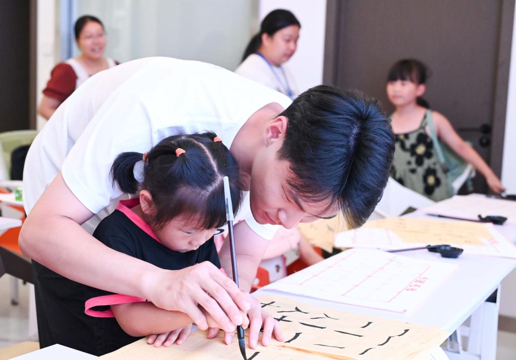 字如其人,立品为先。课堂以书法起源及发展为立足点,逐步引导孩子走进书法世界。实践队成员巧妙设置问答环节,调动孩子兴趣,帮助孩子巩固知识。随后进行的书写实践环节,让社区教室里弥漫着淡淡的墨香,仿佛穿越时空,与千年的文化对话,让每一个孩子都能感受到那份来自历史深处的温度。孩子们手持毛笔,轻蘸浓墨,一笔一划间,不仅是在书写汉字,更是在体会中华文化的博大精深和独特魅力。本课程是孩子了解书法文化的敲门砖,也是主力传播书法文化浓墨重彩的一笔。