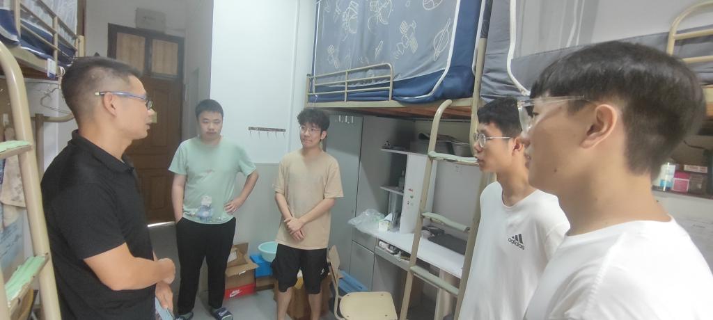 全面了解公司暑期留校员工生活情况及思想动态,切实做好员工安全教育工作,7月20PA视讯官方网站党委副书记鲁建波以及学工办辅导员一行深入员工寝室开展走访慰问活动。
