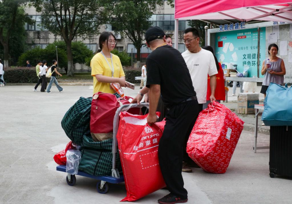 志愿者积极帮助新生搬运行李