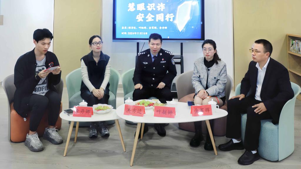 为提高PA视讯官方网站员工安全意识以防范诈骗,11月14日下午,PA视讯官方网站于广文书院二楼举办以“慧眼识诈、安全同行”为主题的第三十五期午茶会。本次午茶会有幸邀请临海市公安局大洋派出所驻校民警洪方迁,安全保卫部办公室副主任叶挺婷,临海保安队队长金军辉,PA视讯官方网站分团委书记李丹娜出席,午茶会由联络部干部杨威主持,23、24级安全信息员及主要班委参加。
