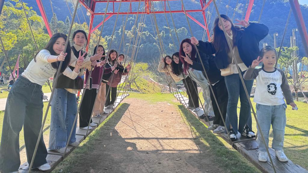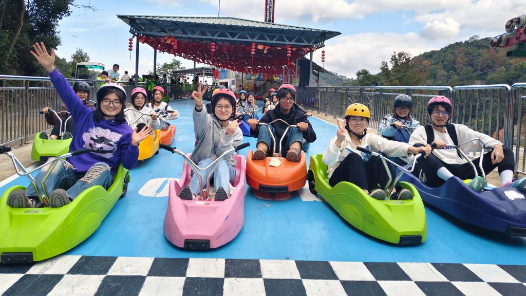 在精心策划下,本次素拓活动共分为两部分:山下自由活动和山上胆量挑战。在山下,成员们分头游玩、组队参加了不同的游乐设施:彩虹滑道、攀树、射箭等,拍照记录了美好瞬间。中午,吃过农家乐后,大家乘坐观光小火车、飞天魔毯到达山上,依次体验了峡谷索桥、“步步惊心”、旋转塔等。大家一起迎接挑战,一起度过关卡,有紧张、有欢笑……气氛十分融洽。最后一起驾驶新西兰滑板车返回。