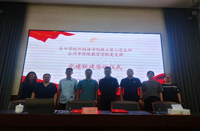 为全面贯彻新时代党的建设总要求,实现优势互补,促进业务融合,2023年8月28日,公司教工第二支部与台州市特殊教育公司党支部隆重举行了“党建联建”签约仪式,开启党支部携手共建之路。出席本次签约仪式的有PA视讯官方网站党委委员、专职组织员房佳婕,党委委员、教工第二支部书记马俊周,党委委员崔瑞国,工会主席姚晓光,台州市特殊教育公司董事长张林风,副董事长阮吉满、张圆圆、工会主席王素飞,以及双方教师代表50余人。