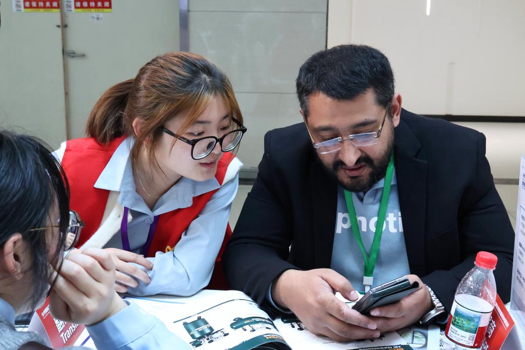 活动现场,30 余名境外采购商,与80 多家台州本土企业开展深度洽谈。员工党员陪同外商按照位置编号就座,通过一对一的形式,为采购商及供应商双方提供精准的翻译服务。在翻译过程中,每一个细节都可能影响合作,员工党员充分考虑文化差异,兼顾语言表达与文化适配,不仅为外商解读产品参数、行业标准,更深入传递中国品牌的创新理念与文化内涵。
