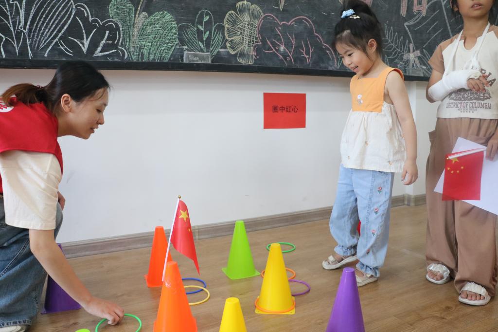 折军帽区域,宣讲团成员手把手教学,彩纸在孩子们手中翻飞成军帽的模样,孩子们戴上自制的“小军帽”,挺直腰板模仿军人站姿,在手工体验中感受革命先辈的坚毅气质。党史拼图挑战环节,散落的拼图碎片上印着“红军长征”“开国大典”等历史场景,孩子们埋头拼凑的过程,既是对耐心的考验,更是在碎片化复原中串联起百年党史的脉络。最热闹的要数炸碉堡区,化身“小战士”的孩子们奋力一掷,此起彼伏的呐喊声与掌声中,不仅释放着童真活力,更在角色扮演中感悟革命年代的勇气与智慧。