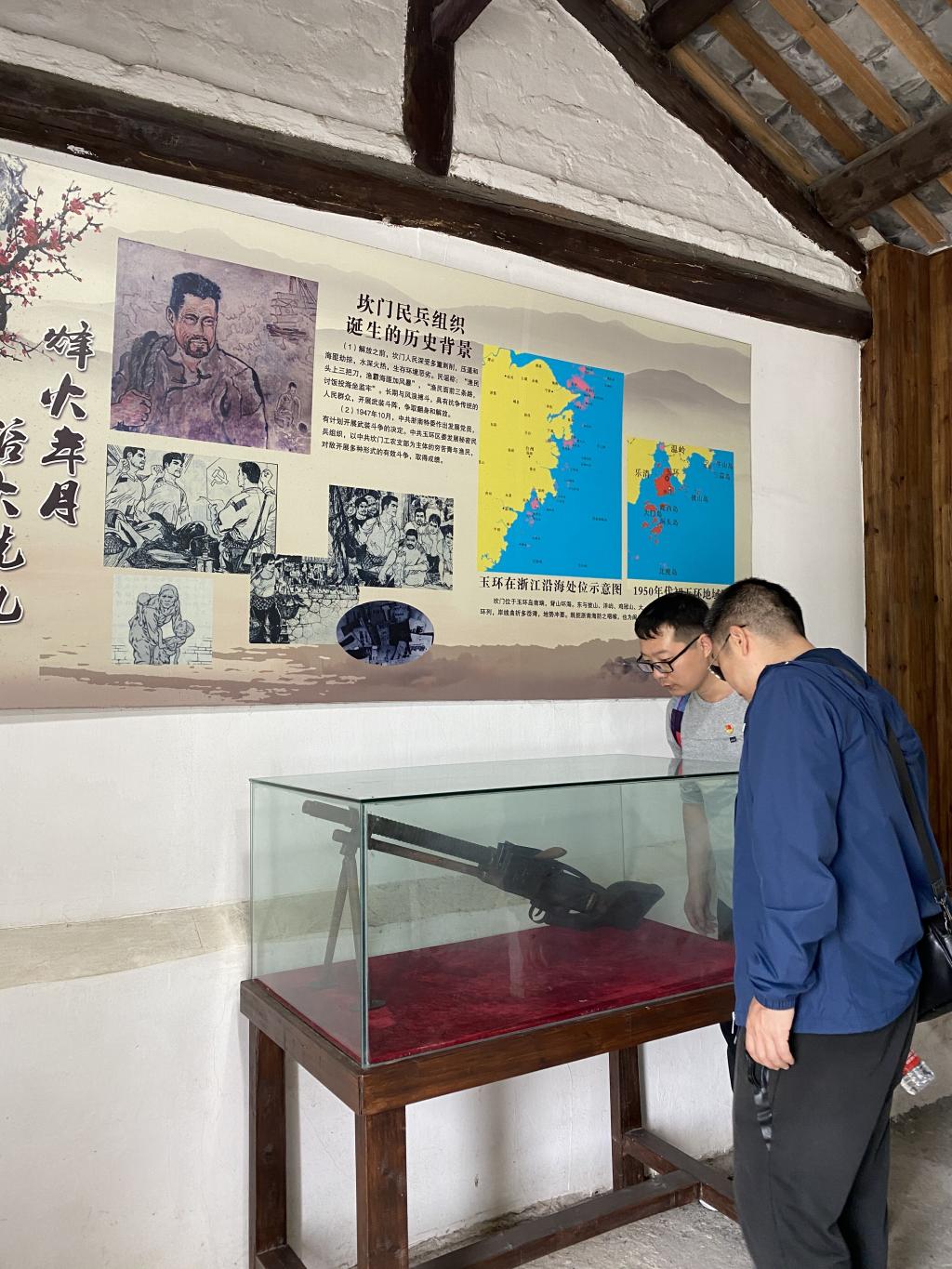 党员师生一起参观了古炮台、东沙文化礼堂海防历史展示馆及非物质文化遗产馆,体验了玉环当地的红色海防文化。展示馆里一件件文物,一张张旧照片,无不承载着一代代东沙人的记忆,看着这些见证历史的遗物,党员们深有感触,这些实物生动地再现了渔民和解放军冒着枪林弹雨,视死如归的爱国精神。