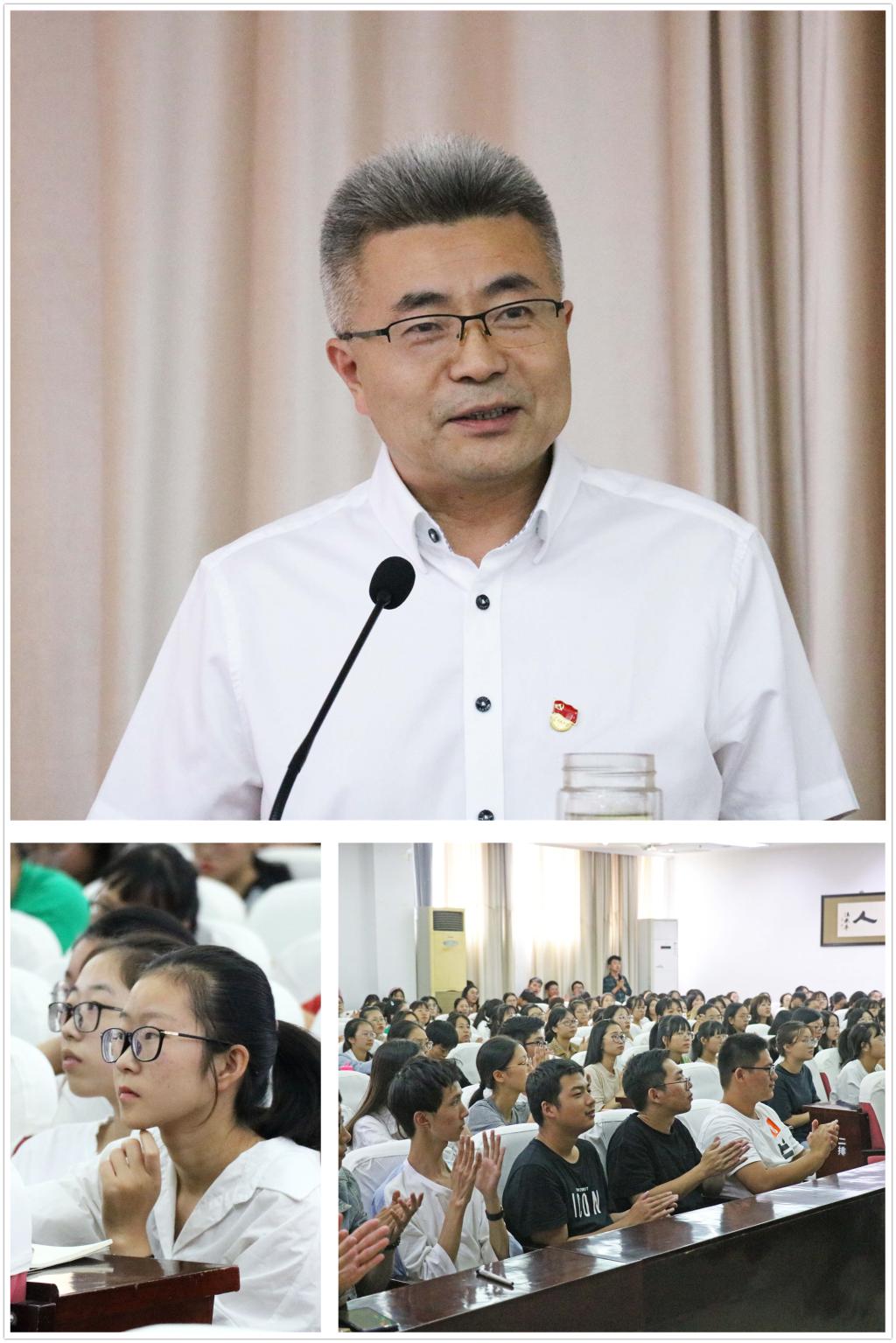 9月22日下午,PA视讯官方网站于在图书报告厅举行了19级新生党课的第一讲,党总支书记施安全为全体新生进行了一场生动的党课。