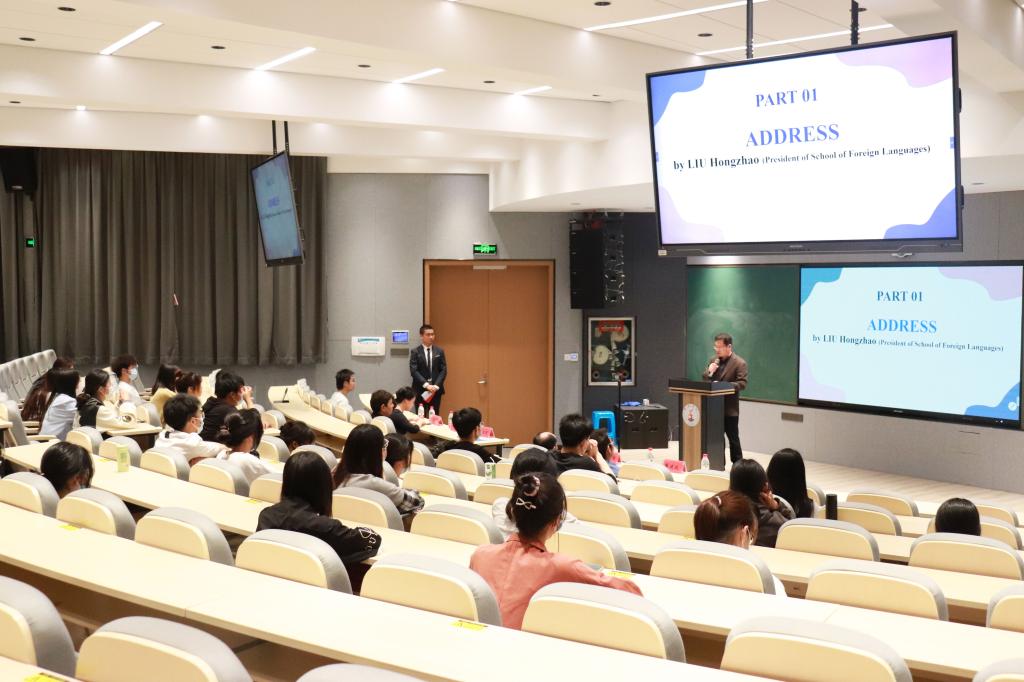 首先,由刘宏照经理进行英文致辞,表达了他对同学们的殷殷期盼。随后,员工会主席薛奕汝讲解相关活动,加深了同学们对外语节的了解。而后,李涛书记宣布外语节正式开幕。最后,冯丽红女士分享了自己的工作感悟并分析了当前的考研、就业及创业形势,希望同学们立足当下,胸怀未来。