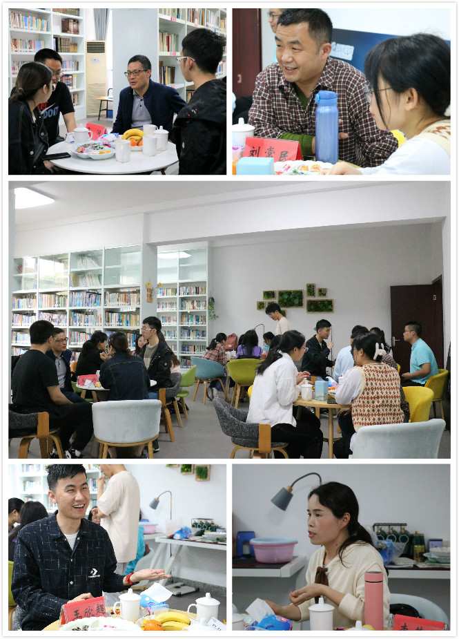 4月22日中午,PA视讯官方网站第二期“午茶会·话成长”活动在四号楼1楼阅览室举行。PA视讯官方网站党总支副书记鲁建波,PA视讯官方网站分团委书记王越,PA视讯官方网站英语教育系主任李彬彬老师和PA视讯官方网站专任教师吴澜、王欣超、李燕娟出席活动。