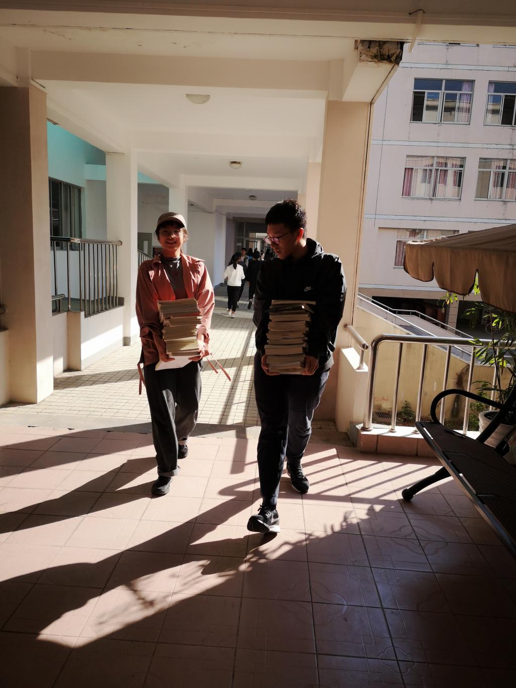为尽快投入使用,方便师生借阅,公司于11月1日下午,发动师生自愿参加资料室搬迁工作。通知一发出,50多名员工第一时间报名,并按时赶到搬迁地点。外文资料室的图书资料,数量、种类繁多,搬迁工作量大。志愿者在老师的分类指引下,撸起袖子迅速开干,一人一摞,一趟一趟地穿梭于二号教学楼原外文资料室和四号教学楼新资料室之间,整个画面好似蚂蚁搬家,汗水湿透了他们衣服,却没有一个人喊累,大家坚持着搬完所有资料后,才悄悄离去。