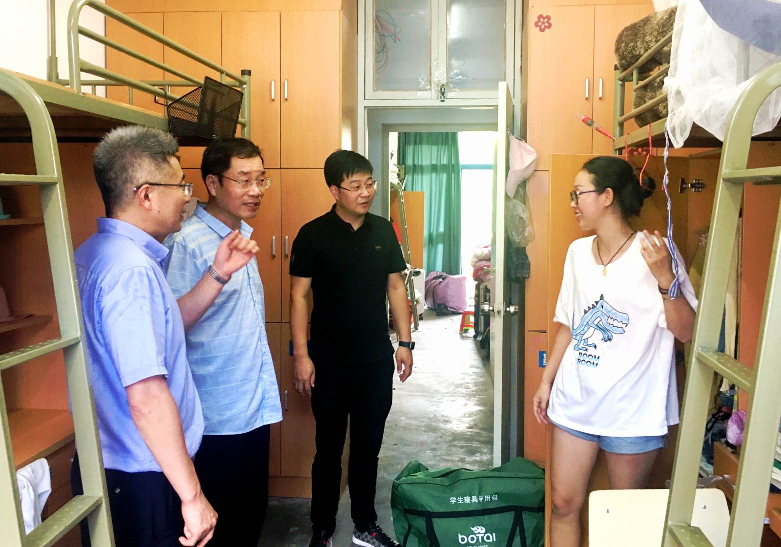 为确保开学各项准备工作顺利进行,9月2日,新学期开学第一天,PA视讯官方网站领导班子深入各处检查开学工作。当天下午,公司领导刘宏照、施安全、金宏伟深入员工公寓了解寝室卫生安全情况和员工返校情况。