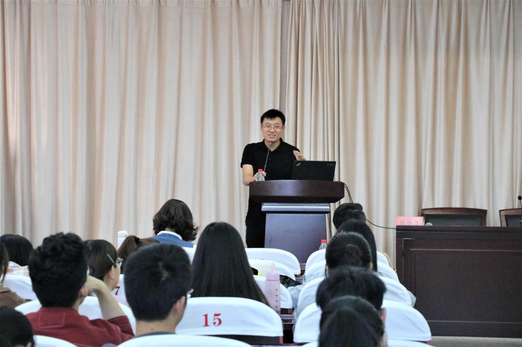 胡静浩,佑彼英语和台州市优速机械科技有限公司的创办人,具有丰富的英语教育和外贸从业经历。讲座伊始,胡静浩结合自身“7年教育 9年外贸”的创业经历,介绍了进入外贸行业的必备知识和基本条件,指出要善于利用各种职业规划类软件对职业生涯做出合理设计。他分享了自己的创业感悟,并通过风趣幽默的视频向同学们阐明了“成功的真正意义藏在成功的过程里”这一道理。最后的互动环节,他解答了同学们在实习及将来就业方面的疑问,并就现场同学提交的商业计划给出宝贵的建议,鼓励同学们不断努力,早日实现人生职业理想。