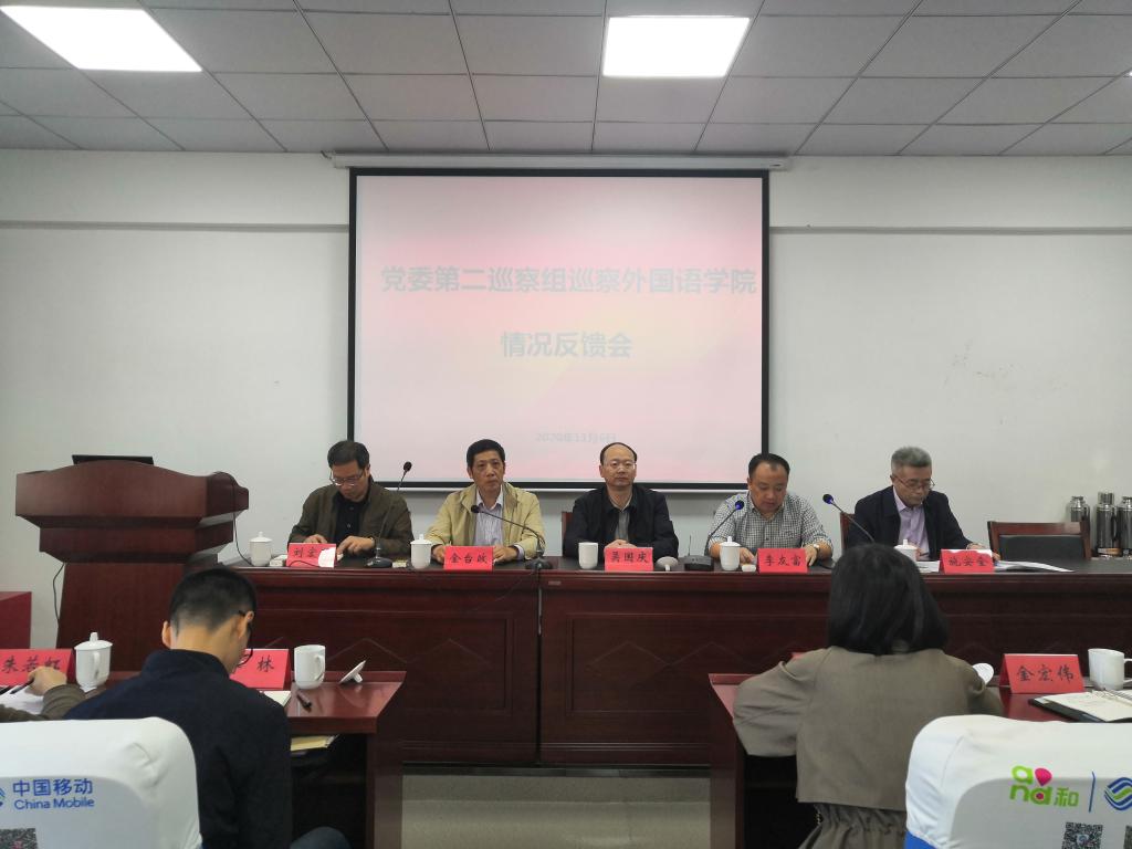 11月6日上午, 党委第二巡察组巡察PA视讯官方网站情况反馈会在4204报告厅举行。党委委员、纪委书记吴国庆协巡察办主任李友富,党委第二巡察组组长金台政及全体成员前来参加。PA视讯官方网站领导班子和部分教师参会。本次会议由李友富主持。