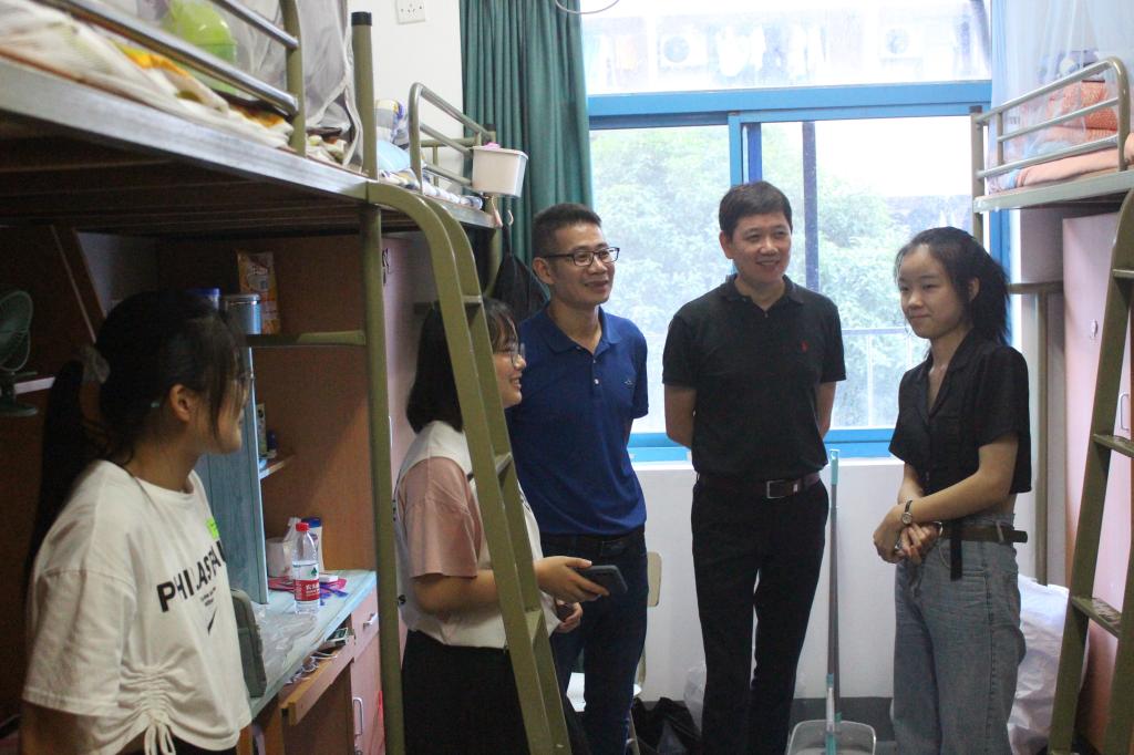 在新生寝室里,卢经理和鲁书记逐一询问员工的返校情况、详细了解在住宿、生活方面的困难,并且叮嘱同学们在校期间要互相关照,遇到问题要及时向辅导员和班主任反映。班主任和班助特别提醒新同学们要保持寝室卫生,注意宿舍安全,尽快调整自己的状态和作息时间,以饱满的热情投入到校园生活中去。