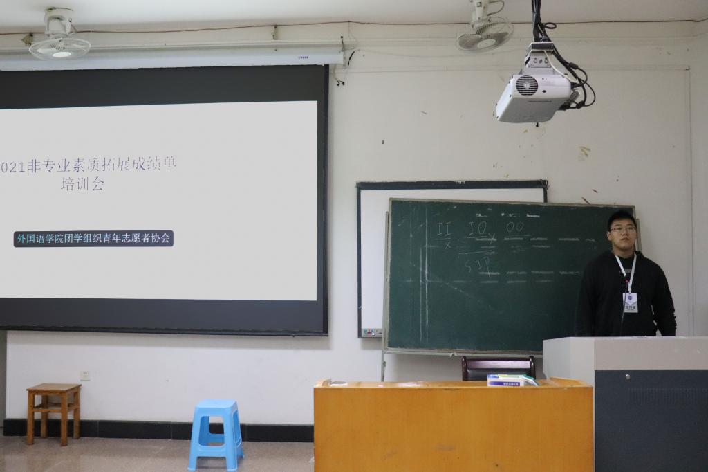 紧接着,第二场会议陈骁哲从“非专业素质拓展成绩单”制度的变化和积分管理办法解读及“PU口袋校园”软件使用方法培训两部分入手进行会议讲解。他介绍了非专业素质拓展成绩单的各个模块以及不同届员工模块修学分的区别。会议最后,他还说明了“PU口袋校园”的使用方法以及签到和签退的注意事项。
