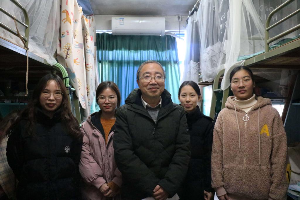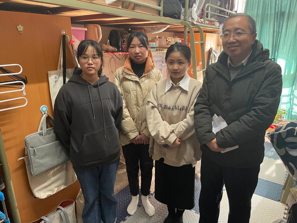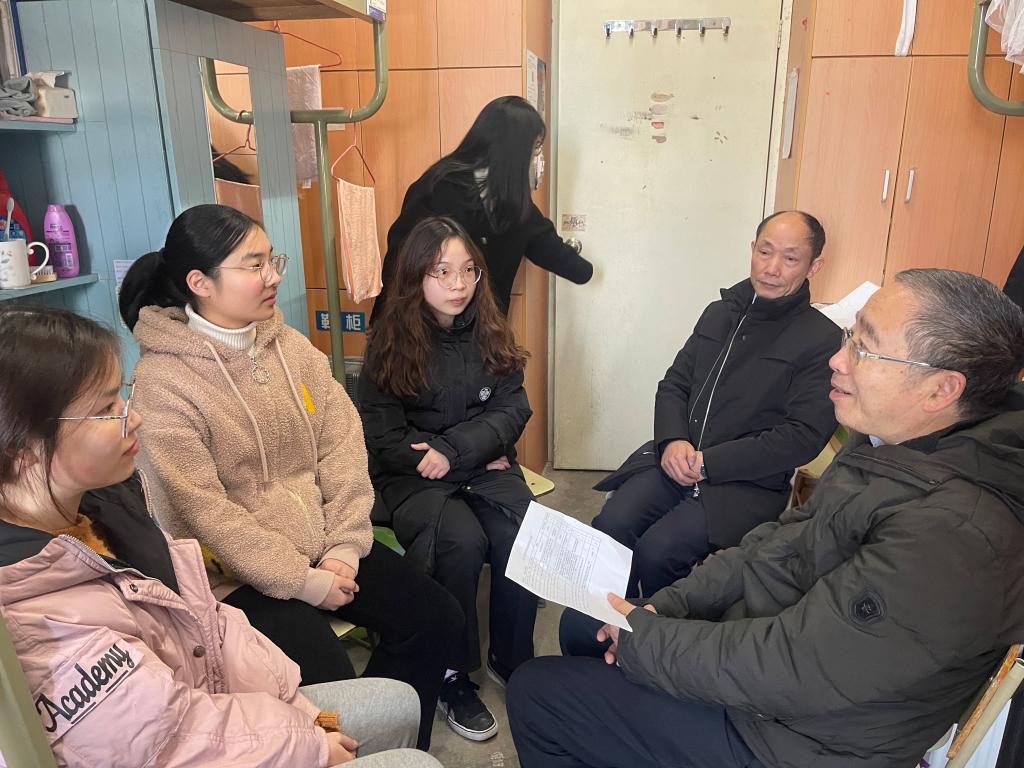在3-1-502-03、3-2-102-01寝室,王董事长表达了公司对同学们的亲切关怀,详细了解并询问了同学们的学习生活情况、节日安排等,勉励同学们要珍惜美好的青春时光,扎实学好专业本领,努力提高综合素养,并叮嘱寝室成员们多沟通、多交流、多互相帮助,养成良好的作息和习惯,还向员工征求意见,倾听着同学们的心声。拳拳之心,关之切,盼之深,像刻在心头的守护,柔柔地打动着同学们,王正副董事长言语中显露出的勤奋和踏实,也在无形中感染着同学们。