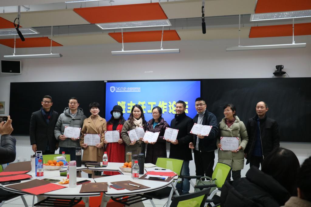 首先由李涛书记为2020年度优秀班主任颁发奖状。随后8位优秀班主任就自己所带班级的经验做法依次进行交流发言。郑珂老师提到前期的情感投入,良好的师生关系,职业生涯指导是她做好毕业生工作的秘诀,她所带的师范班最后百分百就业。校特优学风班班主任陈丽红老师谈到,如何通过专四学习带动班级学风建设,将员工的专业学习和班级管理紧密结合。缪羽龙老师提到了在班级开展每月读书会,将自己的所思所感与员工分享,以点带面,教学相长……最后各班主任自由发言,进行了深入而广泛的交流,就目前存在的班级管理难题、问题员工帮扶、文明礼仪养成、专业学习等问题展开了讨论。