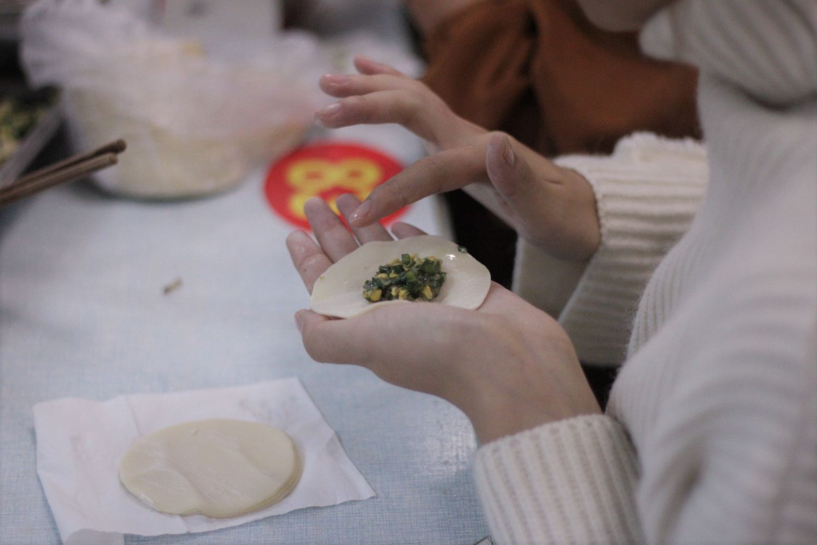 当晚,公司团学组织员工干部还在临海校区食堂进行了包饺子活动,150多人共同包饺子的场面其乐融融,同学们在劳动中收获快乐和喜悦。现场,各团学部门自编自导的各类文化娱乐节目充分调动了周末食堂的校园文化氛围,获得过往的同学驻足观看。