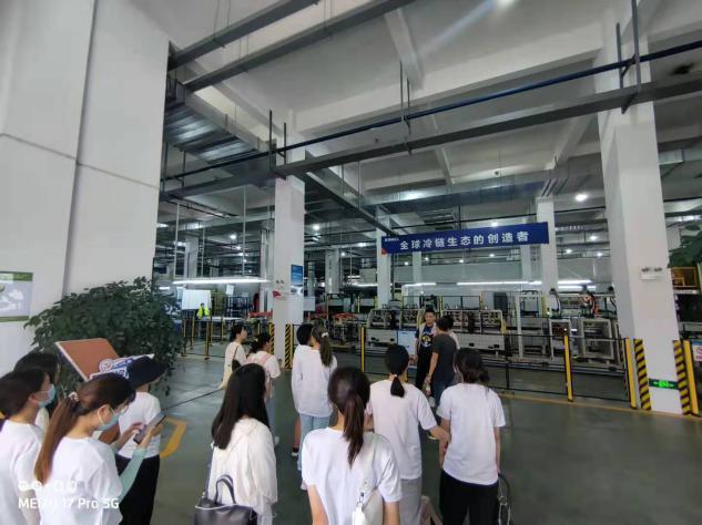 在星星集团王海冰总经理的带领下,同学们满怀着期待走进了星星集团。星星集团领导与实践队在会议室展开实习活动的讲解与交流,对集团和此次活动进行了大致介绍,并表达了对实践队最终实习成果的期待。会后,星星集团工作人员带领实践队同学参观星星冷链流水线以及生产过程。