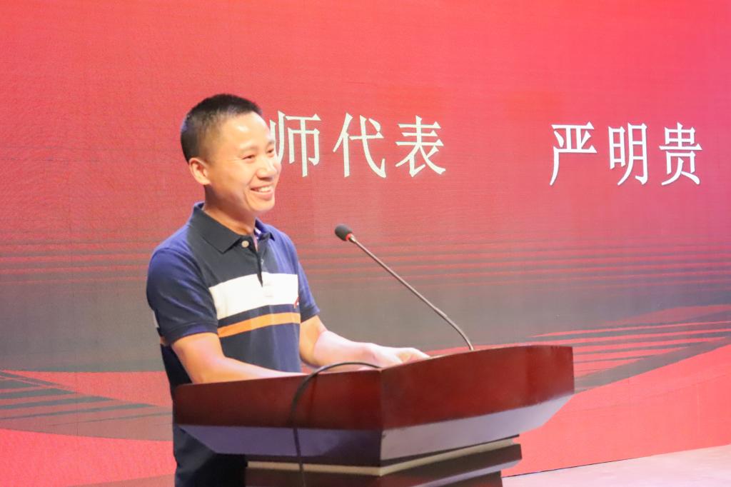 接着,教师代表严明贵发言,他以熟鸡蛋和生鸡蛋为例,用生鸡蛋告诫同学们要学会感恩,珍惜当下;要全面发展,成为一个全面的人;记得天道酬勤,坚持就是胜利。随后,员工代表项展恺、张越先后发言,不时引起大家的共鸣。