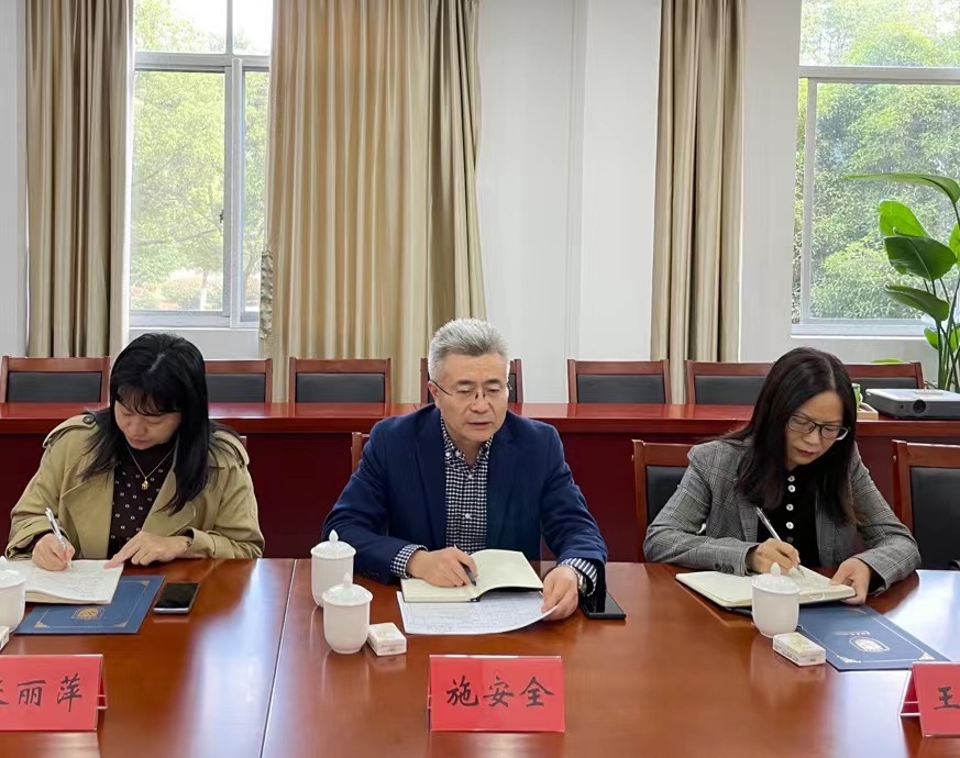 11月9日,国际交流与合作处处长施安全一行,到公司开展调研。公司领导班子和系部主任参加会议。