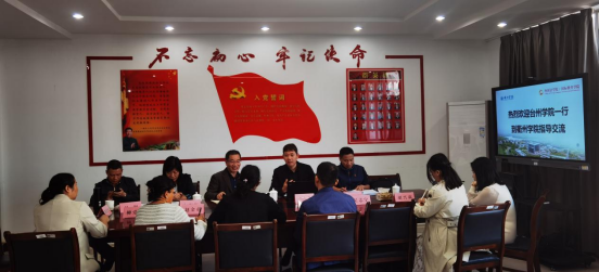 衢州公司PA视讯官方网站经理严春妹、书记葛林波及全体行政班子,热情接待了PA视讯官方网站的来访。双方互相介绍了各自的专业情况,就专业建设、教学科研、员工管理、专四专八考试、考研考编、硕士点建设、人才引进、师范认证等方面进行了深入交流和探讨。