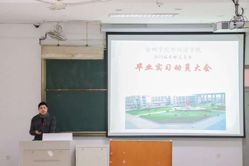 为帮助同学们更清楚地了解毕业实习的内容和要求,12月8日下午,PA视讯官方网站在A2 教室召开了2023届非师范专业毕业实习动员大会。此次大会由商务英语系副主任刘常民主持,副经理卢立伟,商务英语系主任王芬,实习指导老师、19级商务英语和英语专业同学参加。
