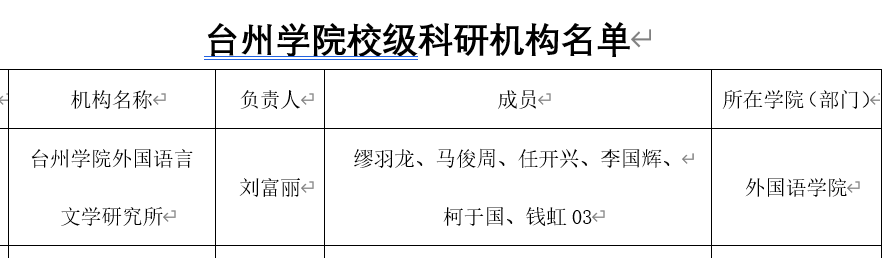 近日,经各科研机构申报、所在依托单位审核、校科研管理部门核定,公司同意成立“台州大数据智能研究中心”等29个校级科研机构,刘富丽教授牵头的外国语言文学研究所成功获批。