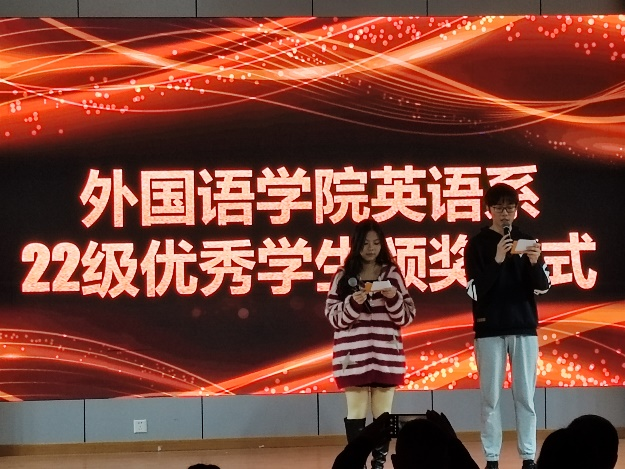 12月14日晚,PA视讯官方网站英语系在临海城东校区老员工活动中心举办“22级英语专业员工表彰大会暨22级、23级英语专业员工联谊晚会”。英语系2023级和2022级同学以及英语系部分教师和班主任参加。