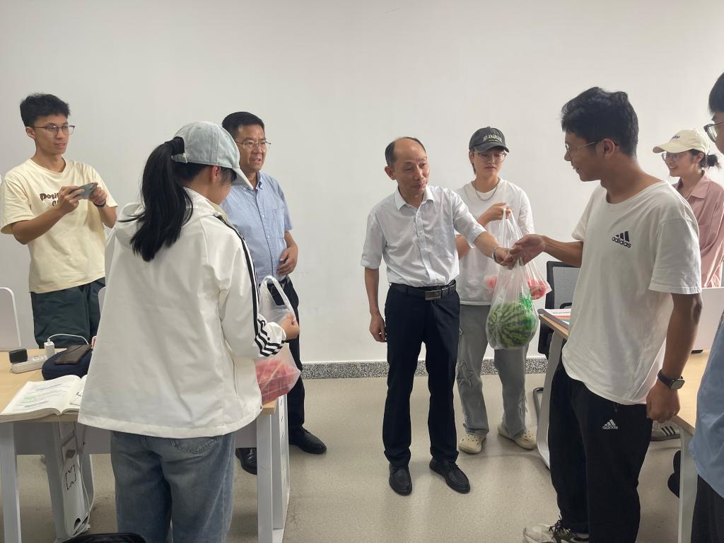 为关心留校考研学子的学业及生活状态,帮助考研学子缓解备考压力,激发备考热情信心,7月15日,外国语公司开展了2024年暑期留校员工“送清凉”慰问活动,公司全体领导班子出席,21级辅导员及班主任代表参加。