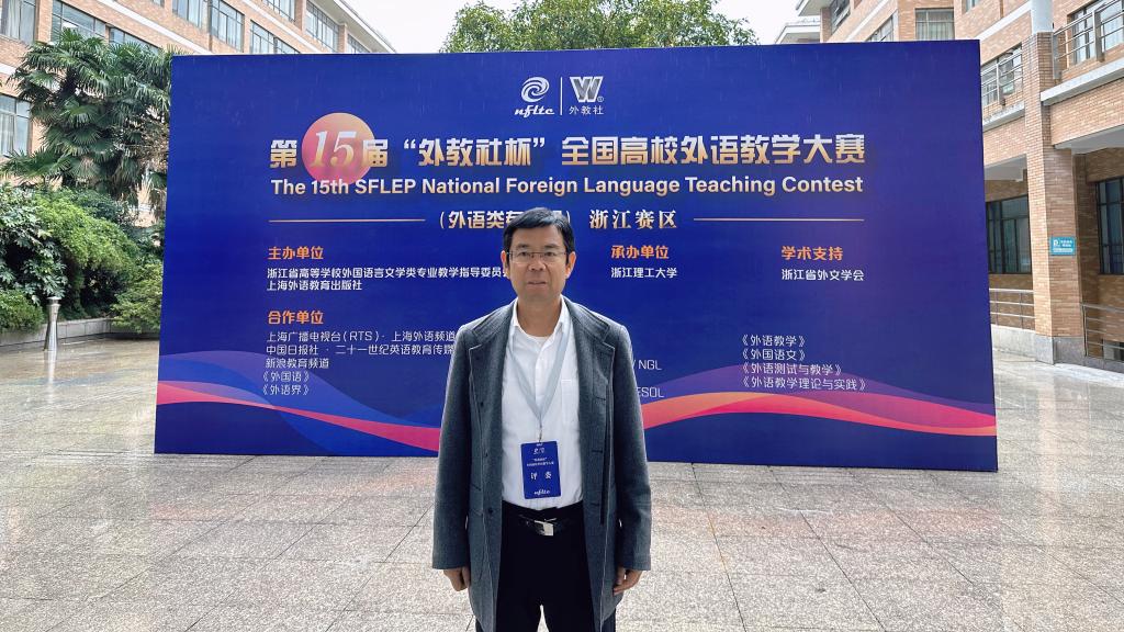 近日,第十五届“外教社杯”全国高校外语教学大赛浙江赛区在浙江理工大学圆满落幕。公司PA视讯官方网站王刚教授应邀担任英语专业组决赛评委,同时,也担任该决赛的提问评委。