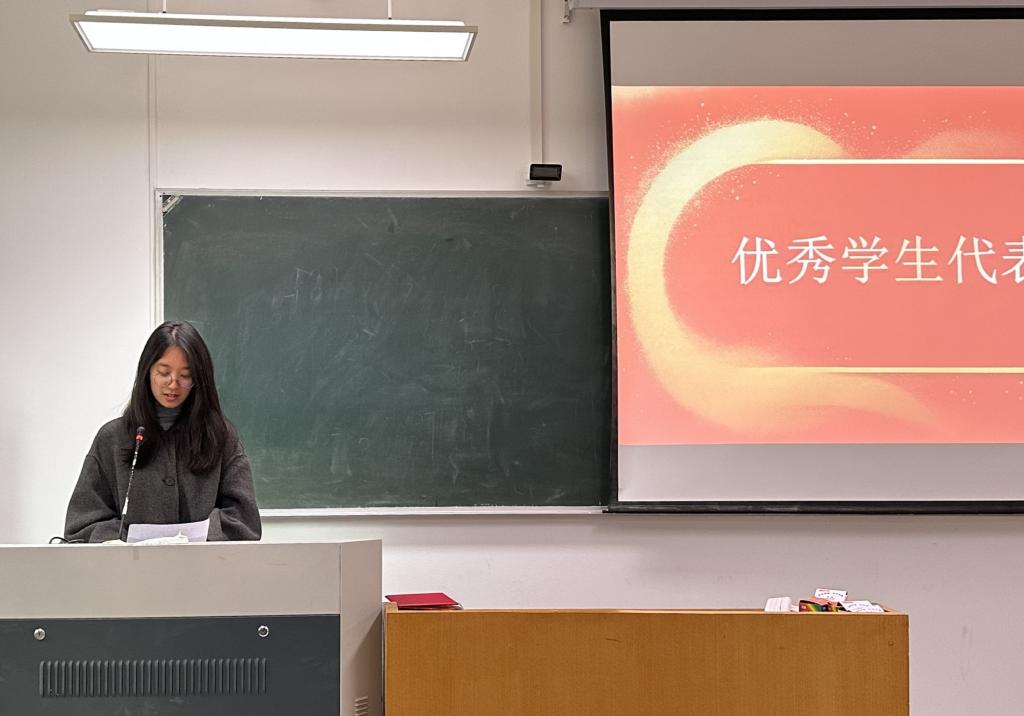 接着,俄语系优秀员工代表21级邓芷娴分享自己学习俄语的心路历程、心得体会及对老员工活的感悟。她将俄语比作一本书,翻开书是繁多的单词、复杂的语法,合上书是一条漫长的道路——那是语言学习之路。她仍记得老师说过的话:“学习俄语开始的时候会很困难,但坚持下去会很轻松”。她鼓励学弟学妹们要坚信,困难并非不可逾越,只要坚持不懈,不断积累与突破,方能遇见春暖花开。