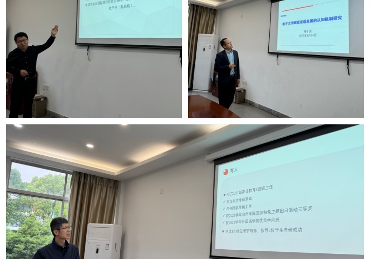 研讨会上,三位博士教师围绕学术前沿话题展开专题分享。王显云博士以《AI工具和技术在教学与科研中的应用》为题,深入探讨了大语言模型在英语教学互动设计、科研论文智能写作中的实践应用,分析其生成性与智能性对传统外语研究的革新意义;柯于国博士聚焦《数字文学赋能双语学习的认知机制》,从双语关键期理论、记忆表征模型、翻译转换机制等视角,提出以数字文学为载体构建双语认知发展体系,为外语教学数字化改革提供理论框架;崔瑞国博士则结合自身教学、科研与行政管理经验,分享近三年学术成果转化案例,倡导学术研究与社会服务协同发展的职业路径。