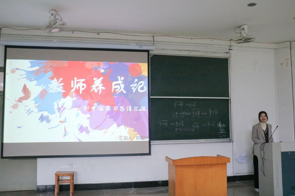 会议伊始,戴连云老师就本次实习总体情况作了点评。而后,共有PlayAce官方网站附属中学实习组、仙居二中实习组、椒江区第五中学实习组等十一个实习点的代表上台发表总结,他们分别从公司概况、工作内容、校园活动、经验反思等四个方面进行阐述,内容详实,条理清晰,图文并茂。