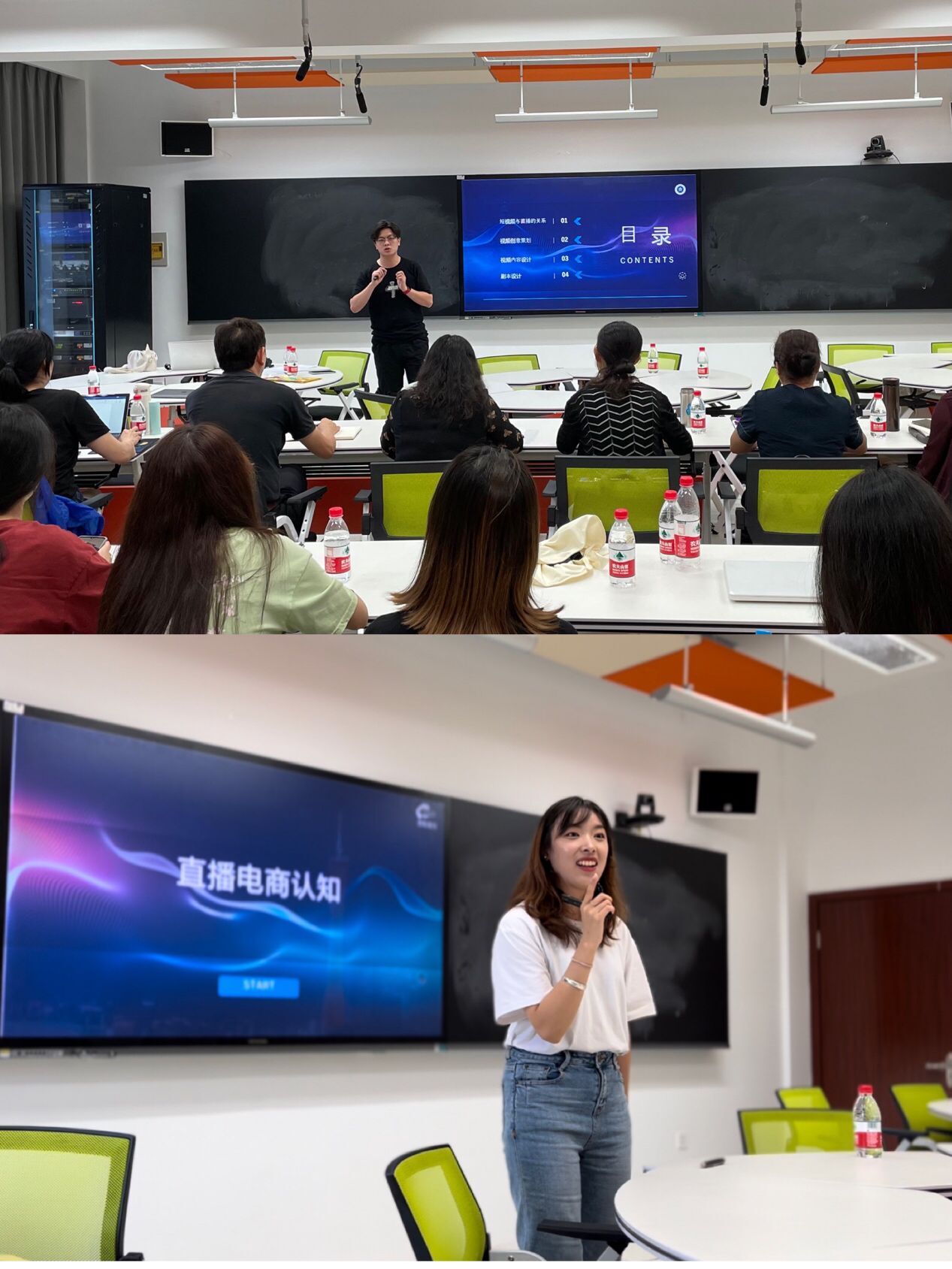 课程中, 两位普特老师深入浅出地讲解了直播电商的概念、直播电商的要素以及实操阶段优秀电商自媒体的账号分析, 系统化的给与会师生做了培训。在听课过程中,公司师生认真思考,踊跃发言,和普特老师积极互动,课堂氛围活跃,反响热烈。