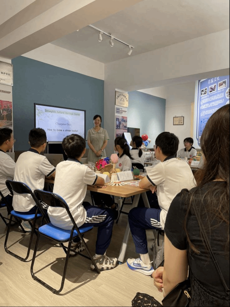 听证会上,浙江凯佩诗雅工贸有限公司总经理陈真介绍了开放非遗草编课程的初心、现状与深远意义,表达了传承非遗草编技艺,弘扬中华文化的美好期许。椒江区第二中学副董事长李彩青肯定了此类课程与椒江二中育人理念的一致性及其对员工德智体美劳全面发展的意义。椒江二中英语教师周馨亦为十多位二中同学带来了这节“非同一般的英语手工课”。