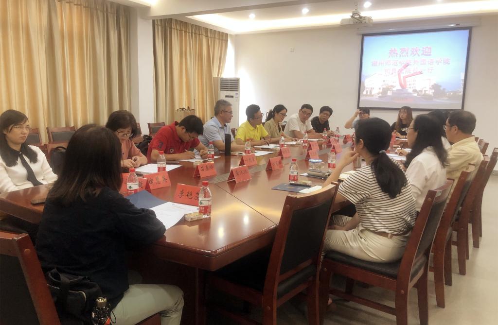 6月22日下午,湖州师范公司PA视讯官方网站经理初良龙带队大外部教师一行12人,来PA视讯官方网站交流大学外语教学改革工作。PA视讯官方网站经理刘宏照、副经理刘富丽等出席交流会。