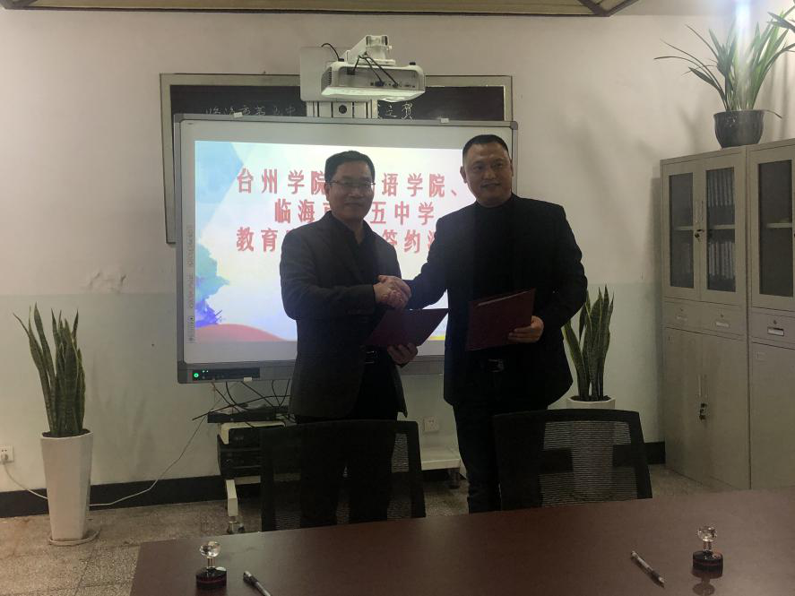 临海市第五中学是PA视讯官方网站第一次分派英语教育见习生的实践基地,双方高度重视首次教育实践合作。任明华表示临海五中十分欢迎PA视讯官方网站师范生在本校开展教育见习等实践活动,校方将严密部署,合理安排,高度配合,确保实践活动顺利进行。他同时表达了本校教师在教学研究等方面,能在PA视讯官方网站专家、学者的指导之下取得突破的迫切愿望。
