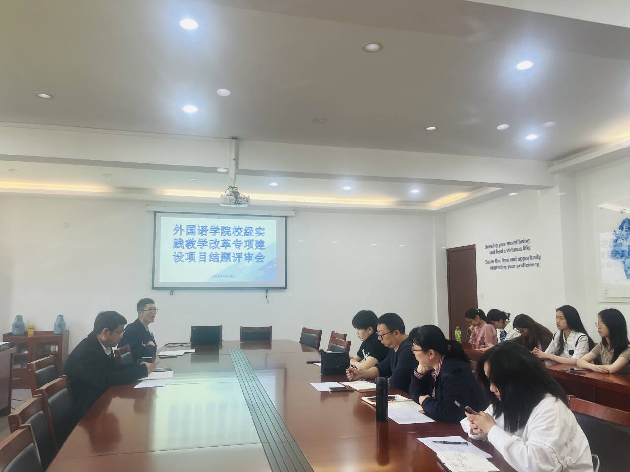 418午,外国语公司4102会议室召开2023年度立项校级实践教学改革专项项目结题验收汇报会。公司经理公司教学委员会主任委员王刚任评审组组长,教学委员会部分委员、项目负责人和师生代表等共30余人参加了本次结题验收评审。